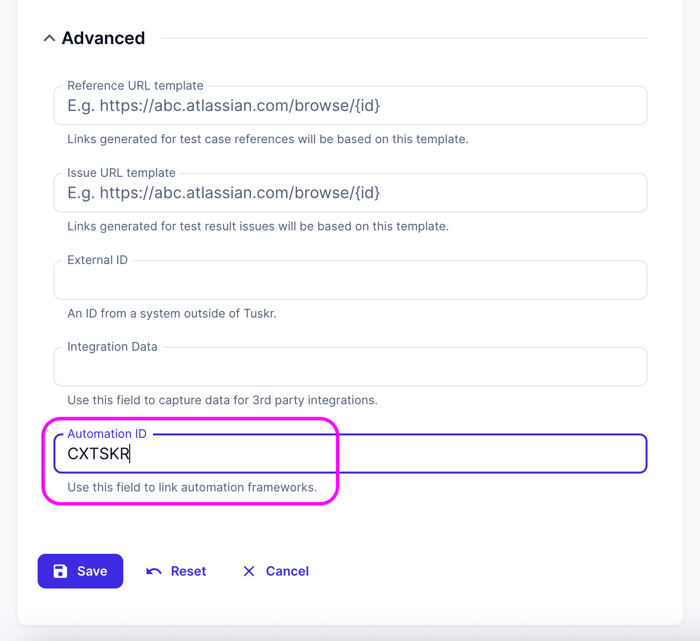 Create a project in Tuskr with the name: Cypress + Tuskr Integration Testing and Automation ID: CXTSKR