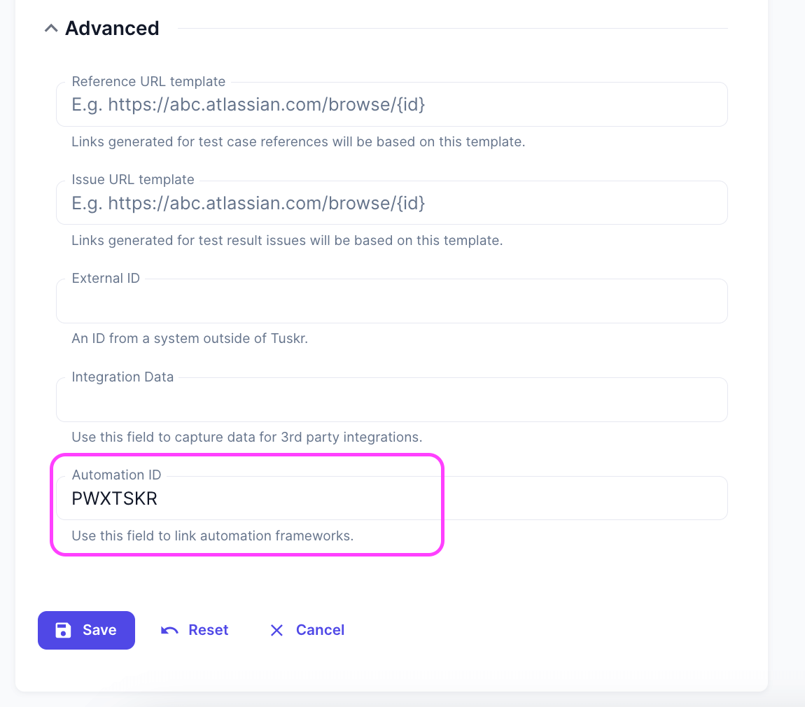 Automation IDs are a stable and convenient way to share the project ID between Playwright and Tuskr. If you set the